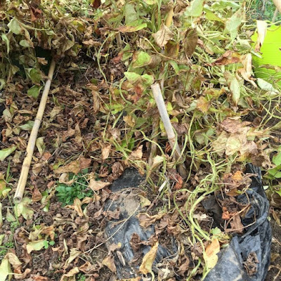 芋掘りする時は、まずマルチと竹の支柱を外し