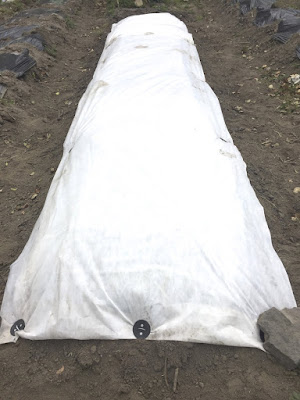 | 畝全体を防寒目的てすっぽり不織布で覆っておいた。 |