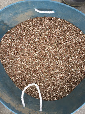 | バーミキュライトは大きな袋で1000円しないので使いやすい。 もちろん畝に混ぜ込んで使うこともできる土壌改善剤だ。 なんといっても、一番嬉しいのはその軽さだ。 |