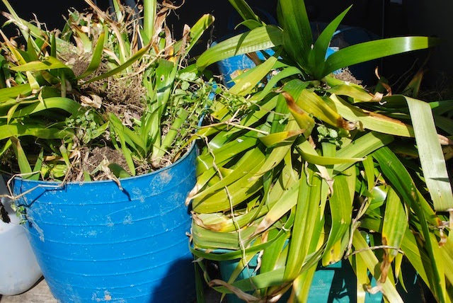室外機の側に植えていたら、やたら増殖し、下の写真のように室外機の前に放置された竹や鉄支柱などの間から顔をのぞかせるように陣地を広げていた。