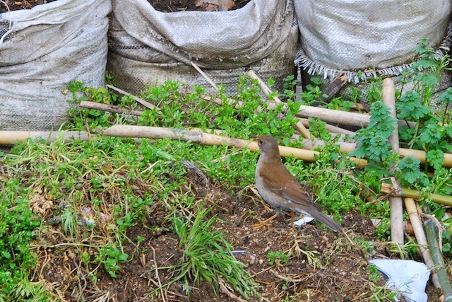 畑で初めて見た鳥だったのでゆっくり見ていたいと思っていたら、すぐそこにツグミがやってきた。