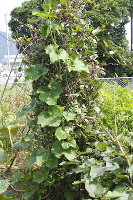 我が家で今年初めて植えたツルムラサキは、9月中旬に撤去してミミズ君の餌実験として使われている。