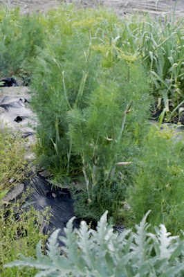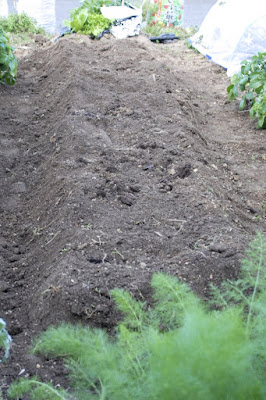 | 数日前までブロッコリーが植えてあった畝。 手前ではフェンネルが元気だ。 |