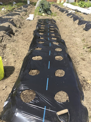まず、マルチを片付けて、真ん中に深めの溝を掘った。