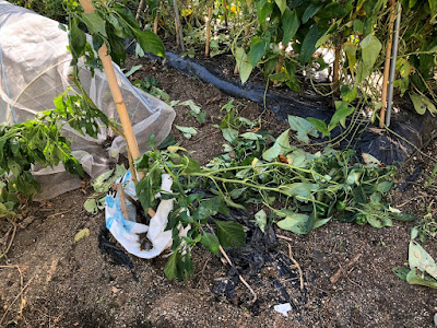 また、数本あるピーマンの苗のうち1本が、あまり固定をしていなかった太い枝が折れていた。