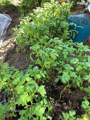 そして、芽が出始めた種芋などを9月初めに小さな2箇所の畝に植えなおしたのだが、今ではほとんど芽が出揃っている。
