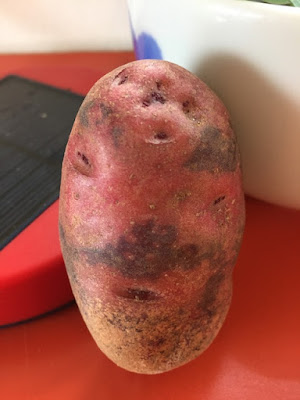 | こちらは食べるのには大丈夫だとは思われるが、傷が入ったりや穴が空いている。 他の芋とは一緒に保存しないグループで、早めに食べるようにしている。 |