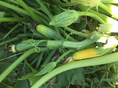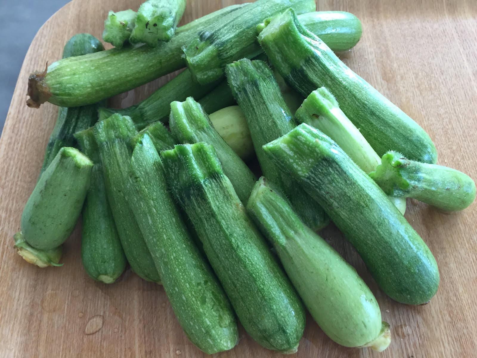 今日は最初の写真のように、20個の赤ちゃんズッキーニと、8本の取り忘れのズッキーニがあった。