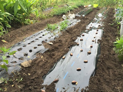 ここは雑草抜きなどの管理が出来ないので、マルチを敷いて種芋を植えるようにしている。