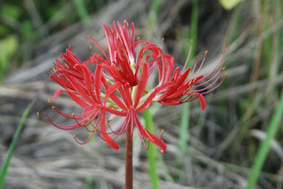 こちらは第2菜園に行く途中、川の土手に咲き始めたヒガンバナ。