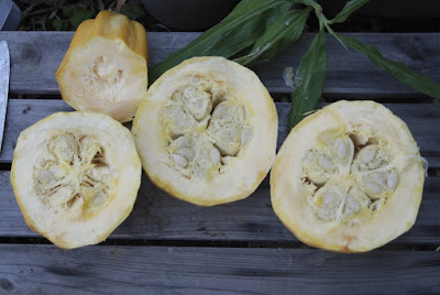 黄緑ズッキーニはちょっと心配、UFO型ズッキーニの方は上等の種が取れると予想している。