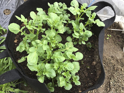 そこで、まず下の写真の大きめの袋の中に6個ほど種芋を植えてみたのだ。