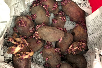 | こちらは新聞紙に包んで保存していたこの冬収穫した芋だが、やはり幾つか腐れてきた。 |