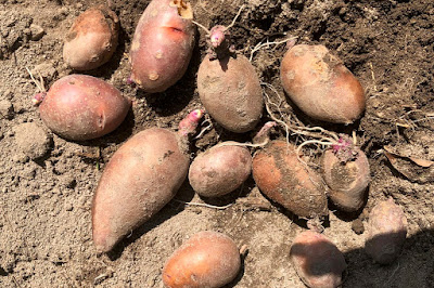 ここから掘り起こした芋は、予想通り若干小さめだったが、もし腐れていたり、芽が出たりしていなかったら、2期作目の収穫はできたと思われる。