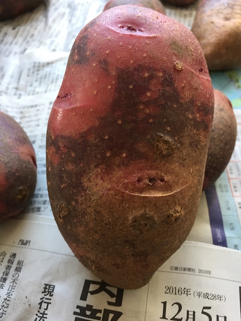 入れ歯が欠けて、何となくふてくされたおっちゃん芋。