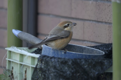 | こちらは、最近餌場にしている鍋のところには遊びに来るモズ。 |