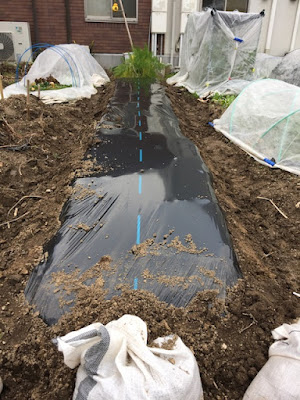 もう1つの違いは第1陣ではマルチに穴を開けて植えたが、第2陣では植えた後にマルチをかけている。
