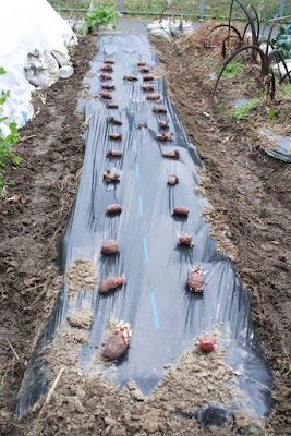 見た目には、種芋の状態は 1)>3)>2)のようだが、実際の収量に差が出るかはチェック出来るようにしておこう。そこで、手前から10個づつを植えていった。