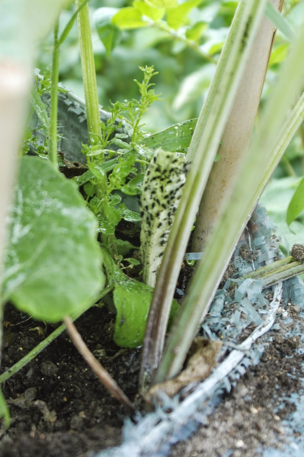 さっそく、トウガラシスプレーが出陣しているのだが、ゴボウに付くアブラムシはしぶとい。