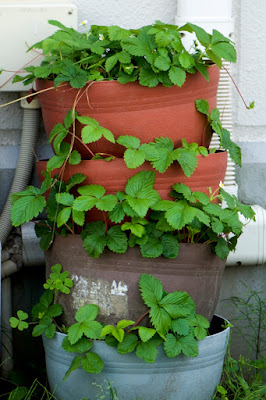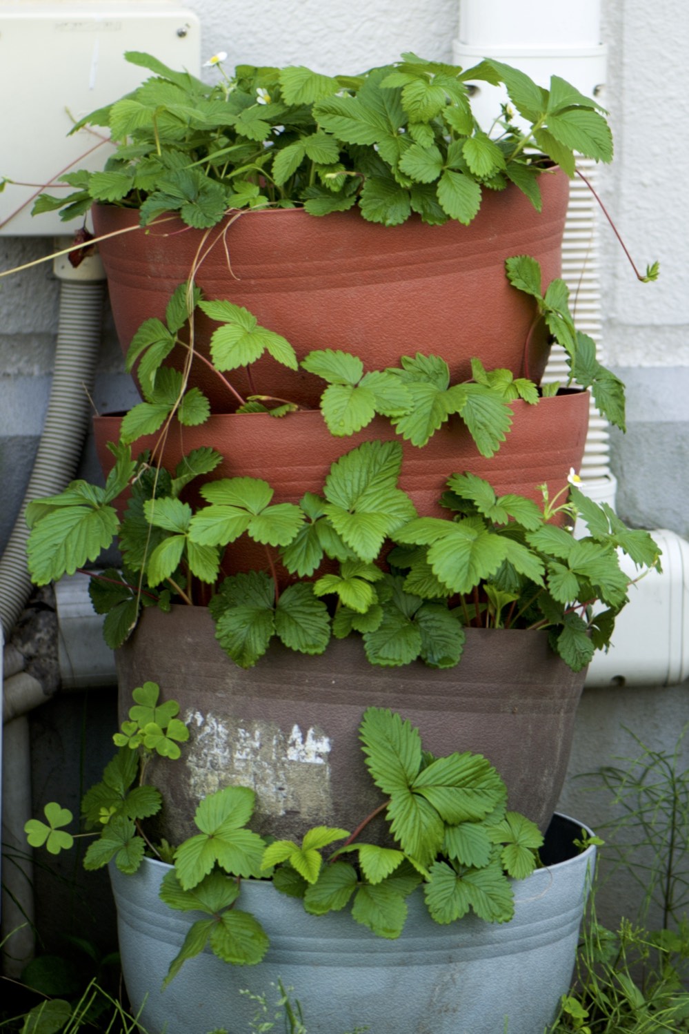 そこで、昨年は菜園の片隅にワイルドストロベリータワーなるものを2つ作った。