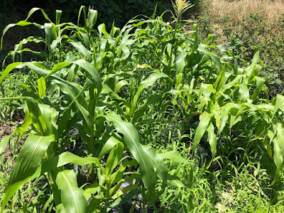 今年のトウモロコシは直まきしたのだが、芽出しはほとんど100%で、ここまでの成長には満足している。