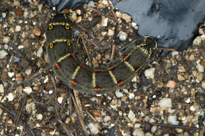 今日のような畑仕事が出来ない雨の日には、菜園の見回りだけをしていたのだが、こんな芋虫と出会った。
