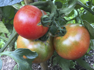 トマトの収穫が始まったので、夏野菜がいよいよ賑やかになってきた。