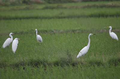 この時期の田んぼで急に目立ってくるのはシラサギだ。