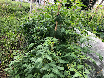 ただ、最初植え付けた頃は、支柱を立て脇芽掻きをしていたトマト。