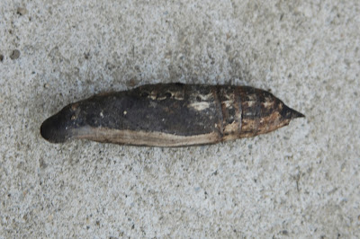 それらしい蛹の抜け殻はグロテスクな幼虫を見つけた苗の側の土の中にあったのだが、結局、ナスの苗の近くの土の中にクロメンガタスズメの蛹を見みつけることは出来なかった。