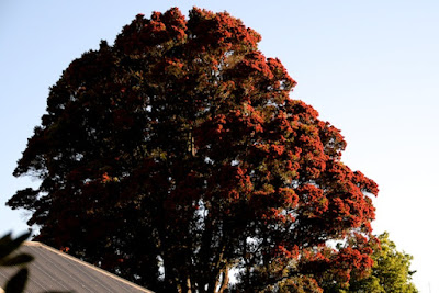 朝起きての散歩では、宿の側の大きな木に、咲いている赤い花(?)が朝日に輝いてきれいだった。