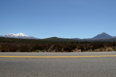 | 右に見えるのがNgauruhoe山、左の雪を頂いた山がRuapehu山。 |