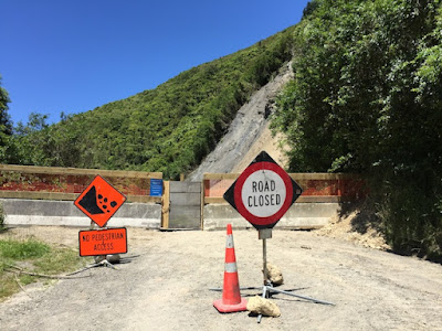 という事で、朝9時前に宿を立ち、1号線を南に向かい、1時間ほどで予定通りOtaki Forksの近くまで来たのだが、もうちょっとというところまで来て道が途切れていた。