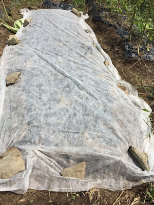 種を浅く覆った土を軽く押さえて、さらに土が乾燥しないように不織布を掛けておいた。