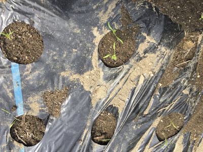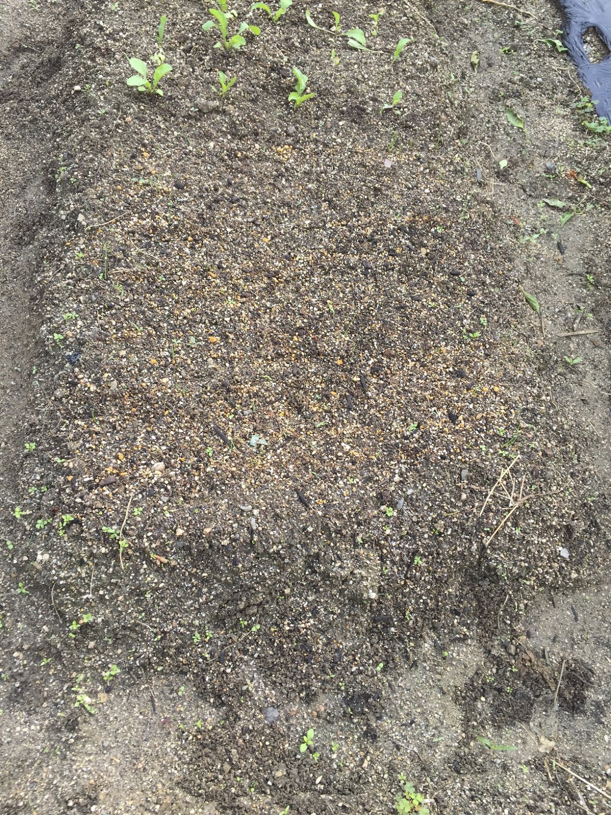 もう1か所、太陽熱マルチを剥いだところにも、黒マルチを掛けたあと、ニンジンの種を少し蒔いていた。