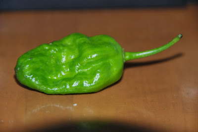 その「ブート・ジョロキア」をひと苗育てていたオババん家の旦那に頂いた実はシシトウそっくりで表面は少しシワシワ。