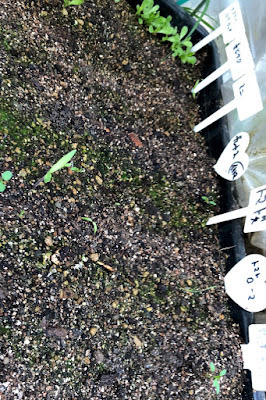 | それでも、小さな芽が出てきているのは嬉しい。 これらの苗も、5月の移植時までに立派な苗に育ってくれていたら嬉しい。 |