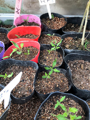 こちらは、温室の加熱装置の上で1ヶ月ほど前に種まきしたトマトの苗。