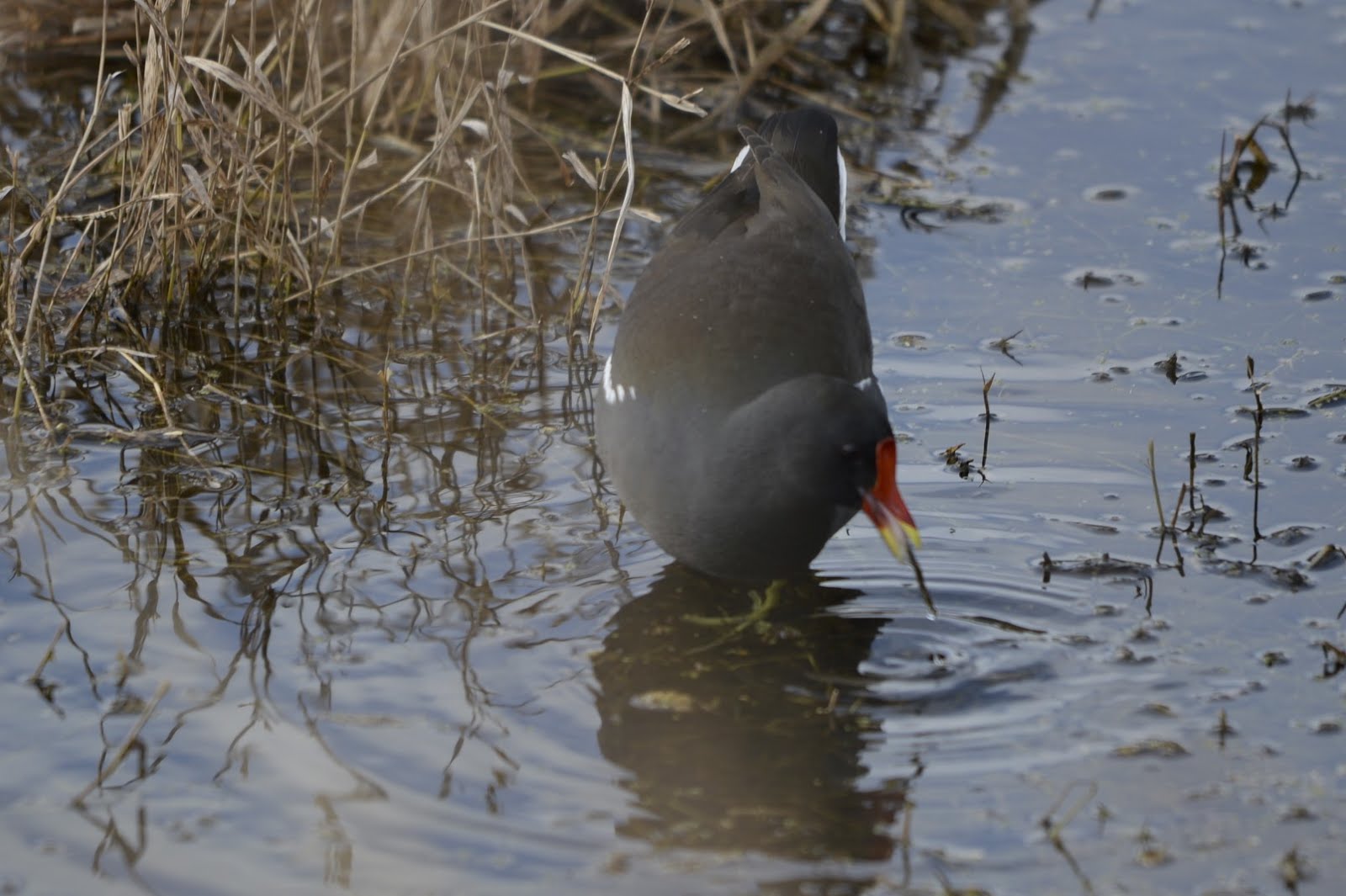 この小川で見かけるバン達は菜園の近くの水田とこの小川の両方が行動範囲だ。