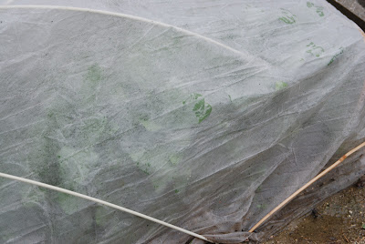 | オババが作ってくれた不織布(パオパオ)によるトンネルがけ |
