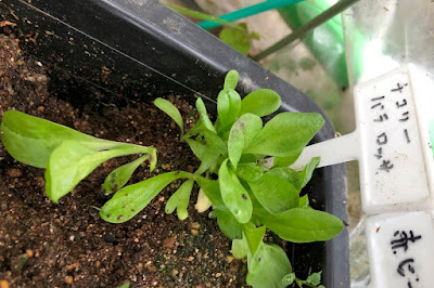 温室からここに移動させた苗は、今日のところはトマトとリーフチコリー(パラロッサ)。