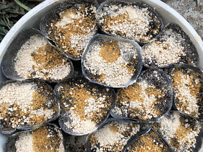 | 白い鹿沼土で覆土すると、水が足りているか色で分かりやすい。 |