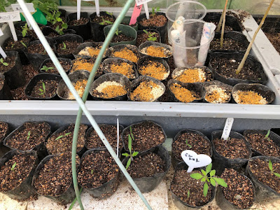 こんなポットは当然温室内でしばらく育苗することになる。