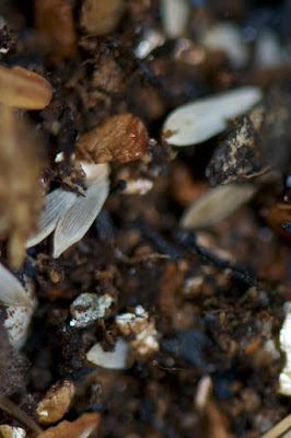 小さな種をアップにしてみると、重ならないように撒いたつもりでも、こんな感じ。