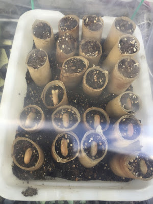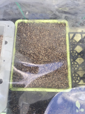 | こちらは育苗器の中のCardoの種を蒔いたポット。 |