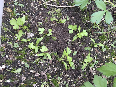 | こんな小さなイタリアンパセリの苗も数本引き抜き移植した。 こちらのプランターにも、もう直ぐパオパオをかける予定。 |