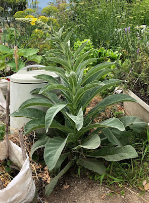 我が家の菜園で、このビロードモウズイカ(Verbascum Thapsus)という植物を最初に見たのは5年前。