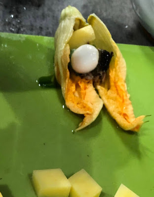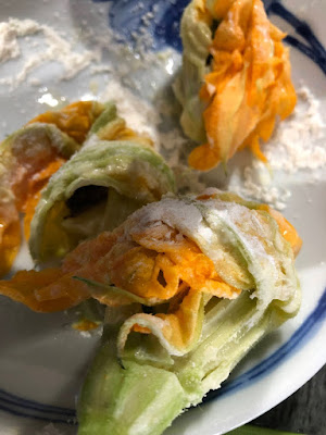 最近我が家でやっているズッキーニの花の料理では、花の中にいくつかの食材を入れて油で揚げるのだが、中にはモッツァレラチーズ、細かく切ったデストロイヤー、アンチョビ、それにバジルを入れることが多い。