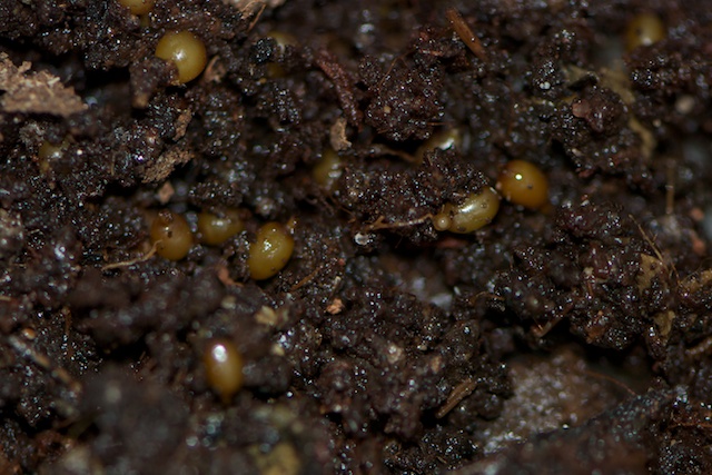 この時期はミミズ君にとって最も過ごし易い時期だろう。 皆とても元気で、妊娠ミミズも多かった。 |