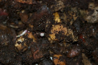 そこで、今回の餌としては、前回の餌に、ミミズ君が大好きな柔らかくなり始めた里芋を少し加えておいた。